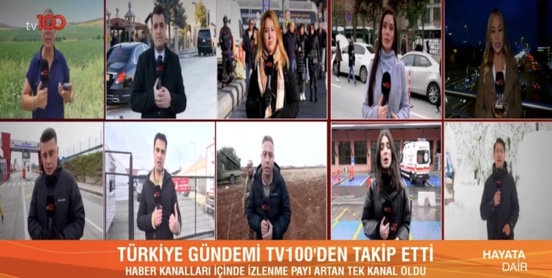 tv100, 'Habercilikte Öncüyüz' sloganı ile yoluna devam ediyor. Her geçen gün başarılarına yeni bir başarı daha ekleyen tv100 Türkiye’de haber kanalları içinde izlenme payı artan tek kanal oldu.
