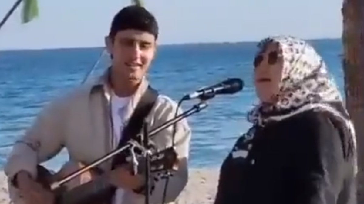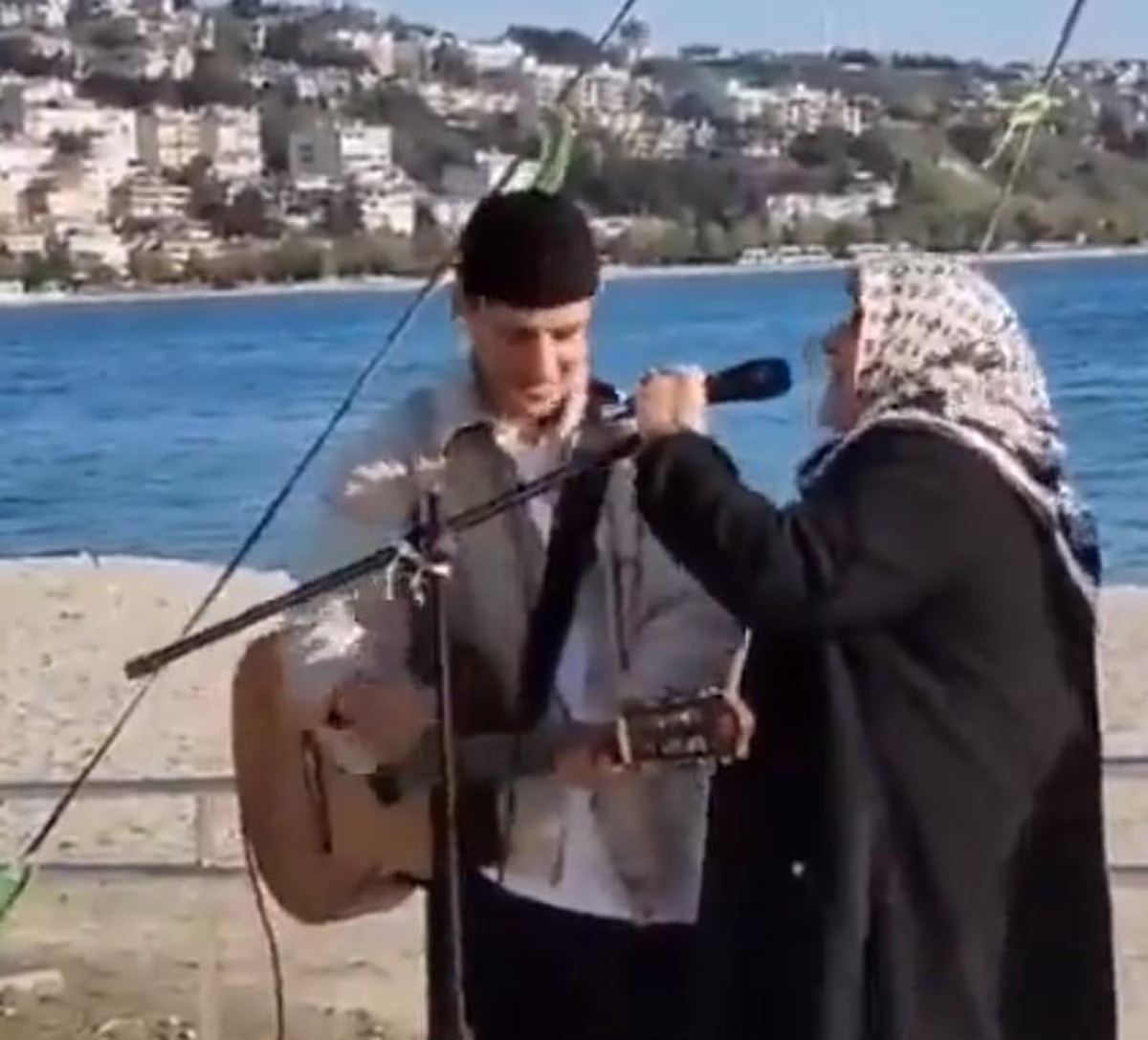 Bu sırada yaşlı bir kadın, gencin yanına yanaştı ve mikrofonu önüne çekiverdi.