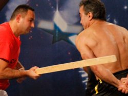 Atletik hareketlerle gösterisine başlayan Karataşoğlu ardından keskin bıçaklara bağlanan mekanizma ile Hülya Avşar'ı oturduğu yerden yukarıya çekti. Ardından üzerinde kalın sopalar kırdıran Karataşoğlu jüri üyeleri ve salondaki izleyicileri fena korkuttu.