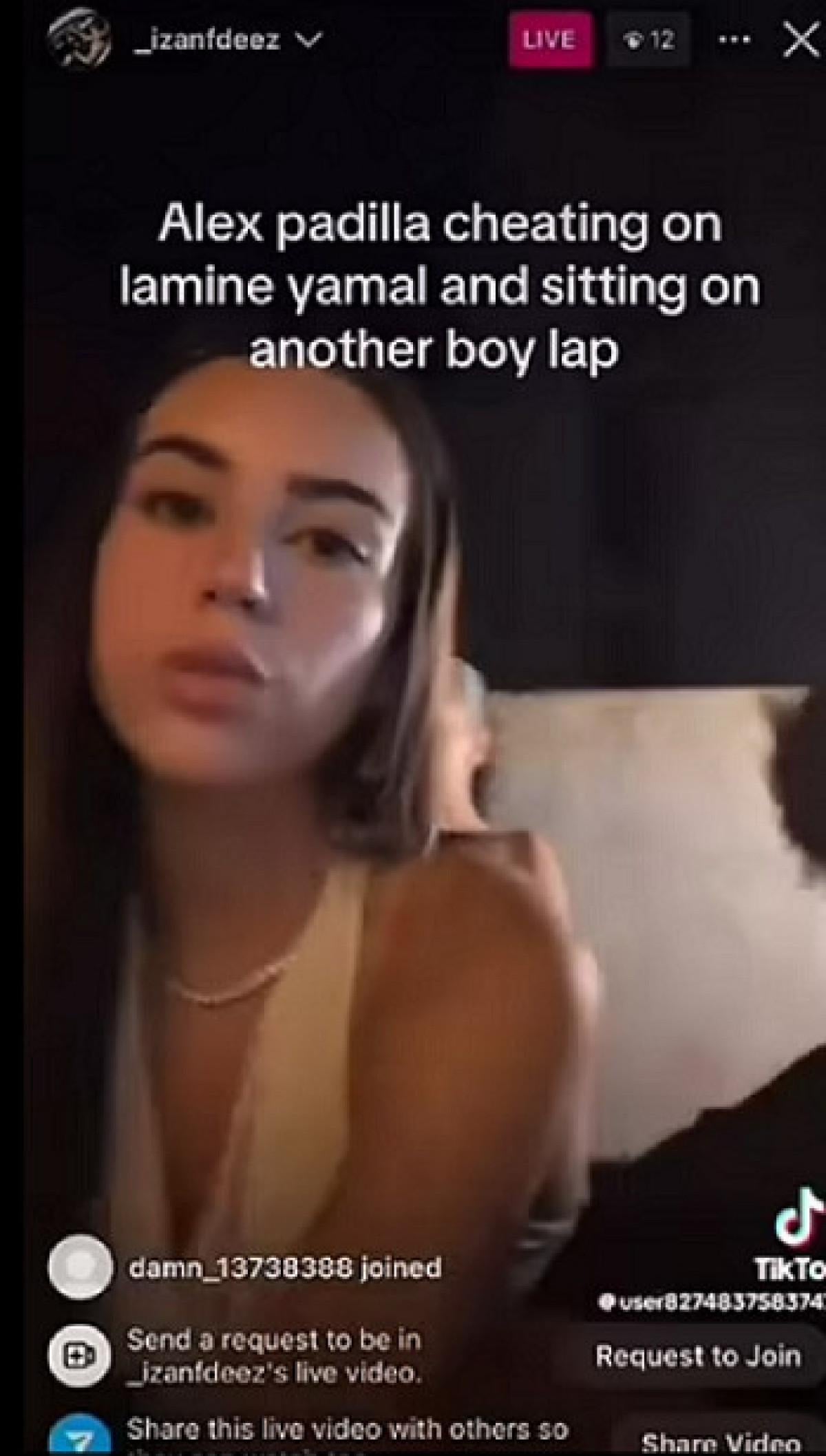 Genç futbolcunun sevgilisi Alex Padilla, sosyal medya hesabından yayınlanan bir canlı yayında başka bir erkeğin kucağına otururken yakalandı.