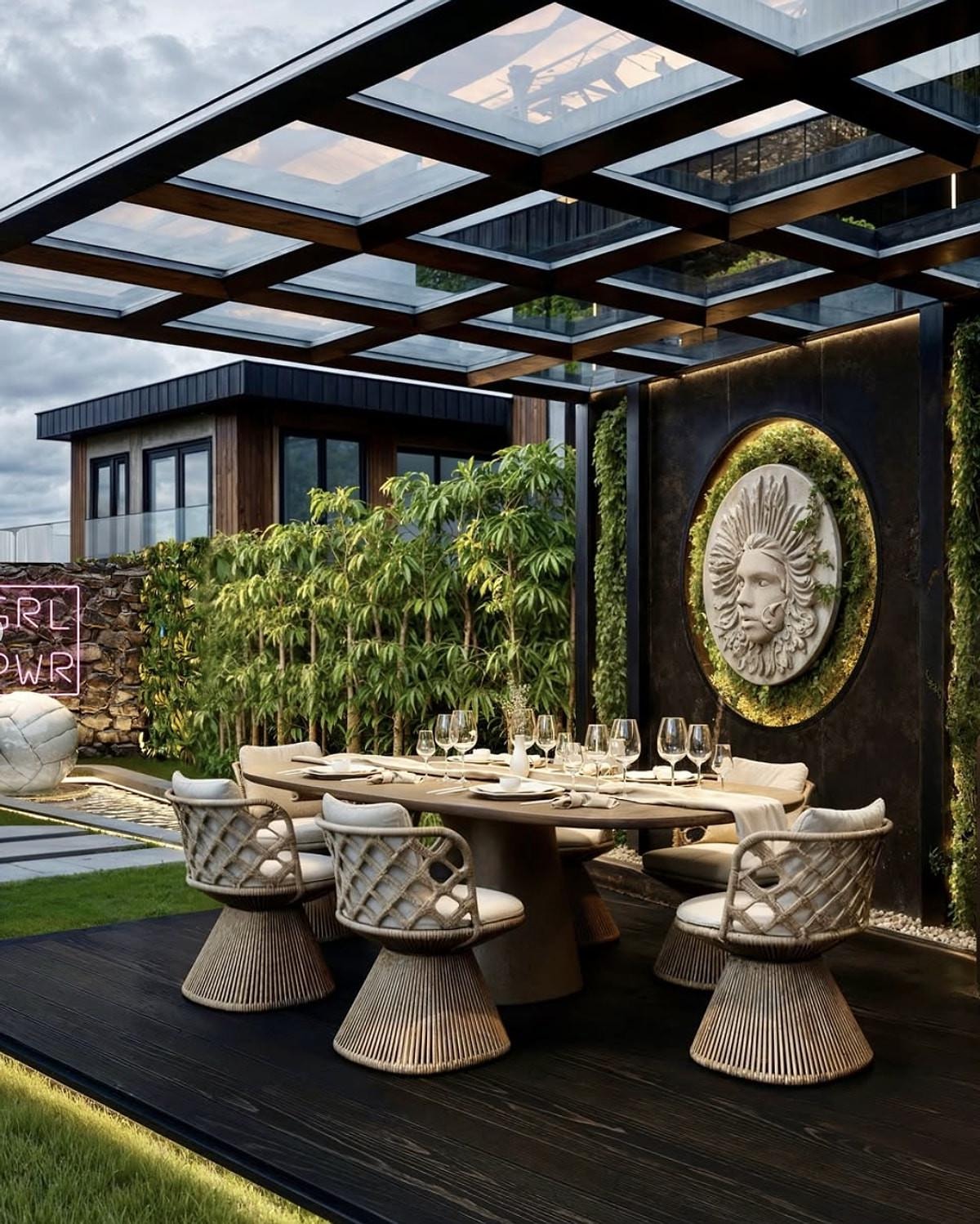 Evin sus havuzunda ise voleybol topu şeklinde bir heykel yer alacak.