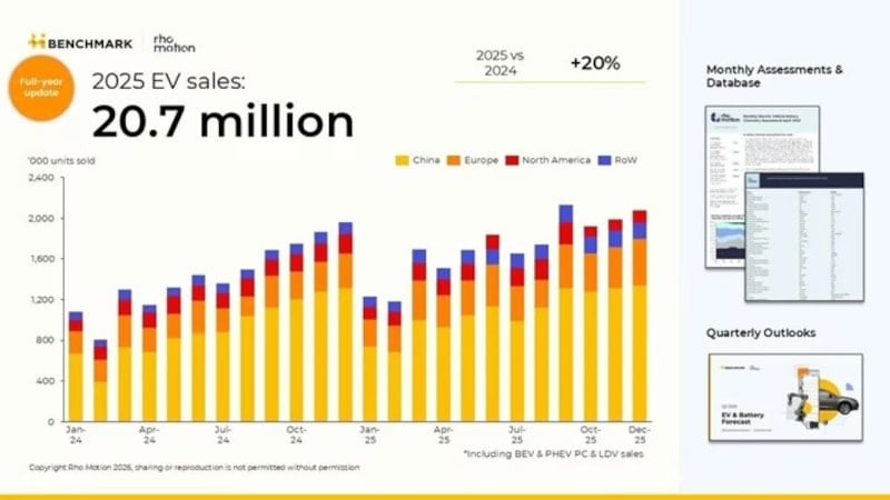 Rho Motion tarafından yayımlanan güncel verilere göre, elektrikli araç sektörü küresel çapta büyümesini sürdürerek 2025 yılını rekor bir satış rakamıyla kapattı.
