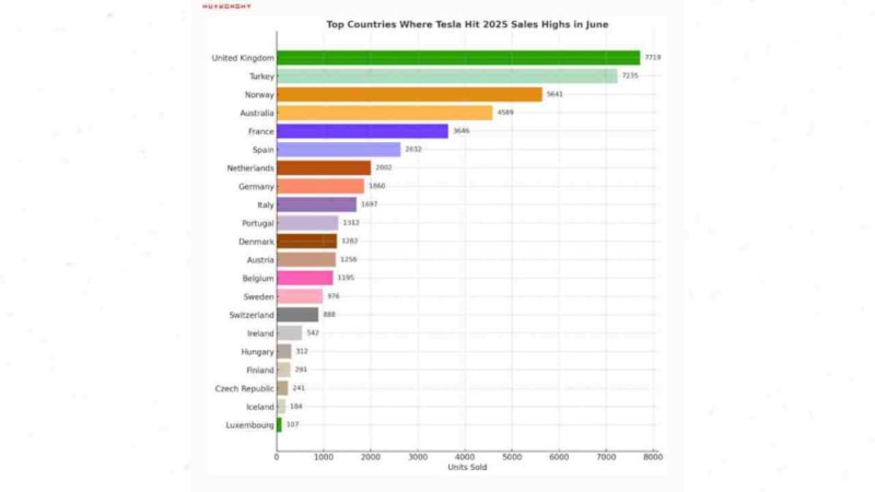 Tesla'nın Haziran 2025 Avrupa satış verilerine göre Türkiye, 7 bin 235 adetlik satışla birçok büyük pazarı geride bırakarak, kıtada en çok Tesla satılan ikinci ülke oldu.