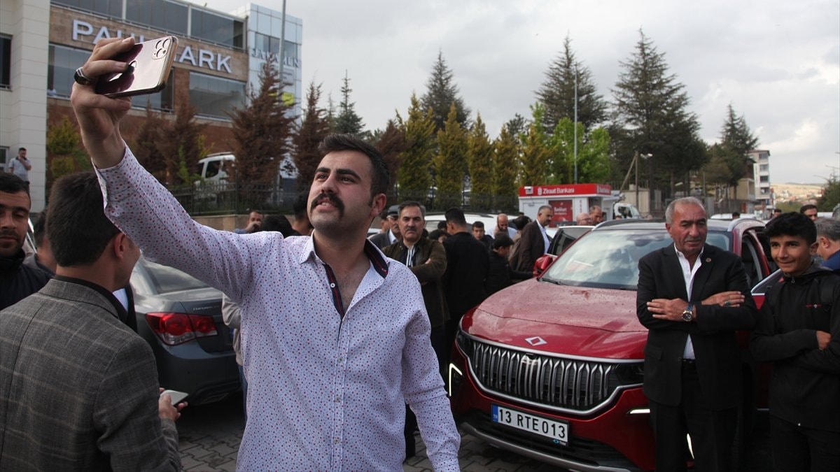 Belediye önünde Togg'un direksiyonuna geçen AK Parti Bitlis Milletvekili Turan Bedirhanoğlu, ilçe merkezinde tur attı.