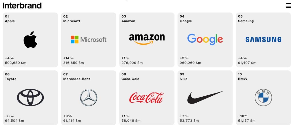 Interbrand, markanın değerini belirlerken, ürün veya hizmetlerin finansal performansı, markanın satın alma kararlarında oynadığı rol, markanın rekabet gücü, sadakati teşvik etme ve böylece gelecekte sürdürülebilir talep sağlama yeteneği de dahil olmak üzere üç temel analizi kullandı.