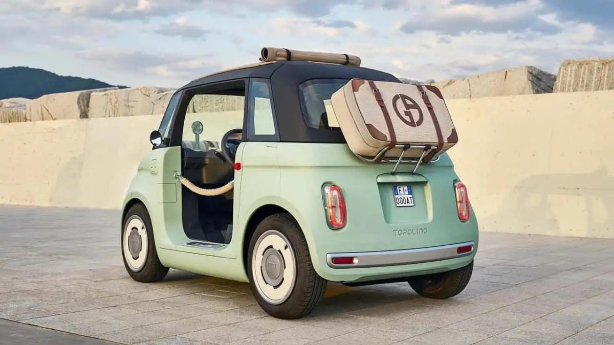 Topolino Dolcevita, özel tasarımlı açılır tavanı, hasır halatlı kapısı, gümüş görünümlü detayları ve aksesuar olarak tercih edilebilecek duş takımıyla geliştirildi.