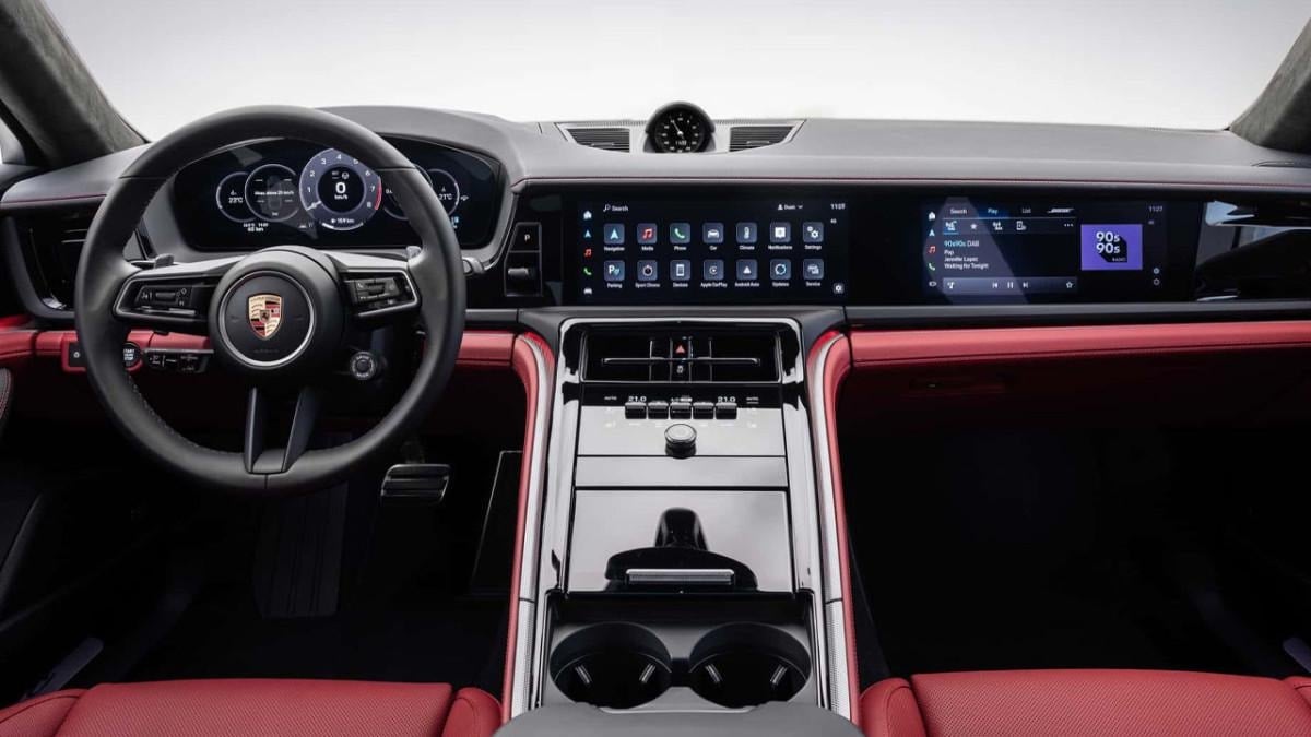 2024 Panamera'nın iç kısımda bazı değişiklikler var. Örneğin vites kolu, direksiyonun sağ tarafına yerleştirildi.