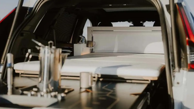 Honda CR-V "Dream Pod" konseptinin iç mekanı, iki kişinin rahatça konaklayabileceği şekilde tasarlanmış durumda.