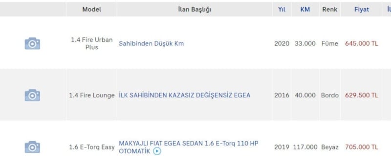 İkinci elde en çok satılan modeller arasında Fiat Egea zirvede yer alıyor. İkinci el Egea, ortalama 600 bin - 800 bin TL bandında satılıyor.