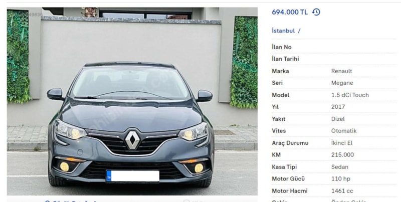 Renault Clio, Renault Megane ve Volkswagen Polo ilk 5 sırayı tamamlıyor. Bu modellerin fiyatı ise model yılına göre 500 bin TL'den 900 bin TL'ye kadar çıkabiliyor.