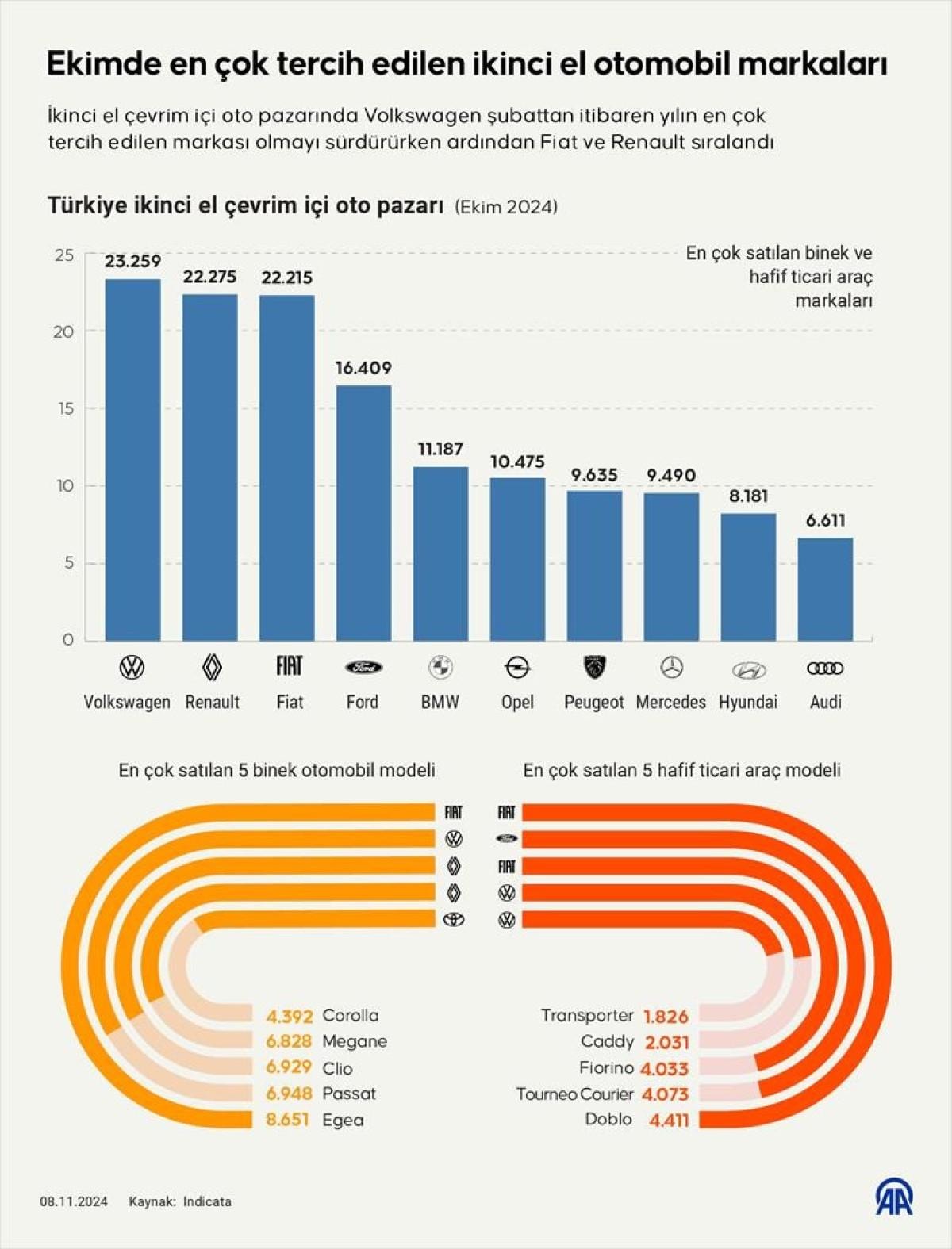 İkinci el çevrim içi araç pazarında geçen ay en çok tercih edilen marka (binek ve hafif ticari) 23 bin 259 satışla Volkswagen oldu.