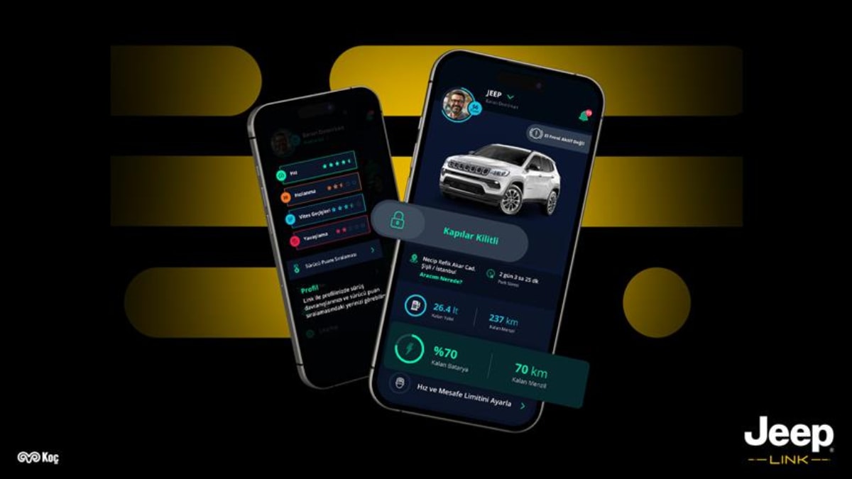 Link aracılığıyla Jeep sahipleri, gerçek zamanlı araç durumu takibiyle yakıt/batarya seviyesi, lastik basıncı, akü durumu ve gösterge paneli uyarılarını anında görebiliyor.