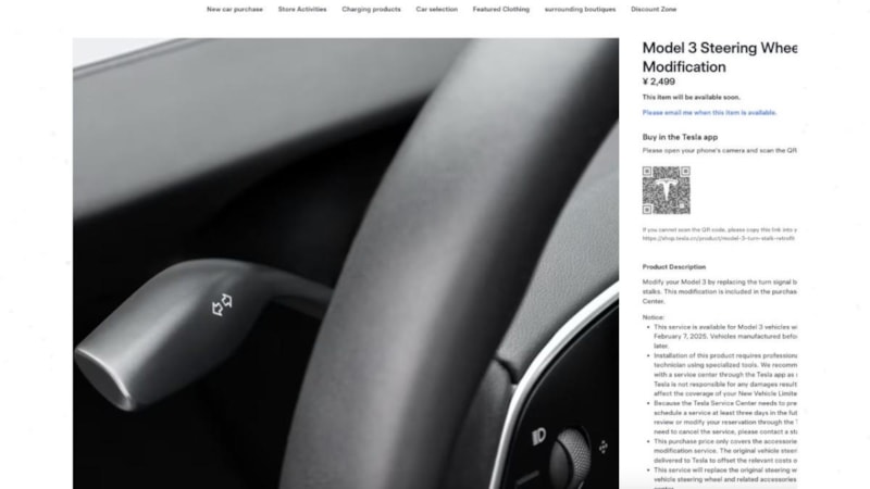 Kullanıcıların taleplerini dikkate alan Tesla, sinyal kolunu şimdilik sadece Çin'deki online mağazası üzerinden yaklaşık 350 dolarlık bir fiyatla satmaya başladı.