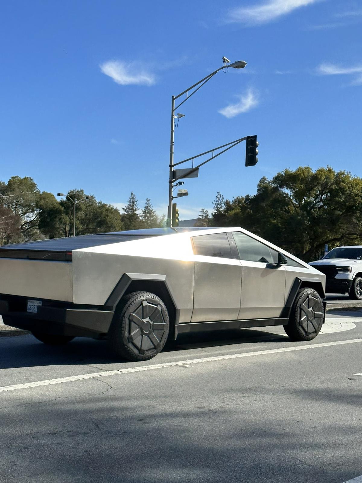 Diğer Cybertruck prototiplerinde açık arazi lastikleri bulunurken bu prototipte Aero kaplamalı dört mevsim lastikler yer alıyor. Ayrıca sabit yan aynalara ve çalışan arka stop lambaları da dikkat çekiyor.