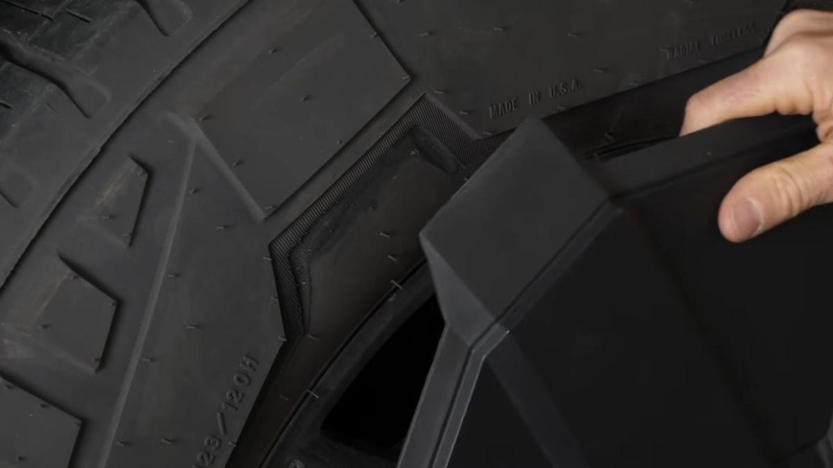 Tesla Cybertruck'ın tekerleklerinde bulunan jant kapakları, hava türbülansını en aza etmek amacıyla özel olarak tasarlandı.