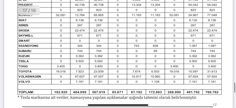 Ancak ODMD'nin paylaştığı verilerde şimdiye kadar Tesla'yı görememiştik. Çünkü ABD merkezli şirket, ODMD'ye üye olmadığı için satış verilerini paylaşmıyordu.