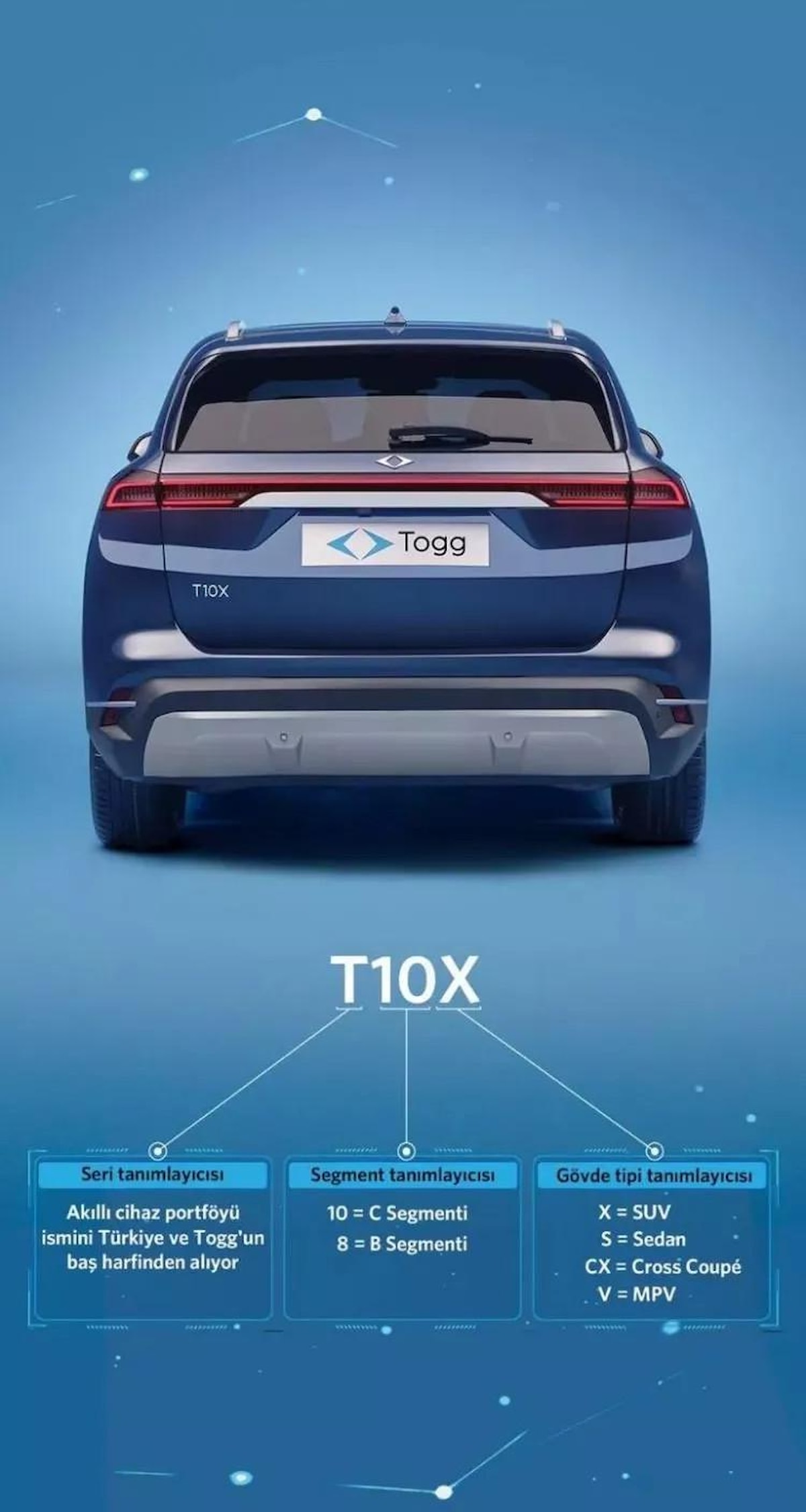 Model adındaki T: Türkiye ve Togg’u, 10: Cihazın üzerine inşa edildiği C segmenti platformunu, X: SUV gövde tipini ifade ediyor.