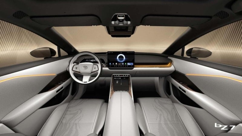 Toyota bZ7'nin iç mekanı da henüz tam olarak gösterilmese de diğer bZ modellerinden daha lüks bir atmosfer sunarak amiral gemisi rolünü pekiştireceği anlaşılıyor.