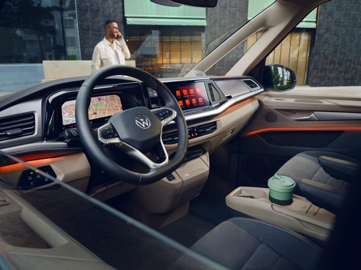 Multivan eHybrid, IQ.Light LED Matrix farlar, panoramik cam tavan, Harman Kardon ses sistemi ve yarı otonom sürüş destek sistemleri gibi üstün donanım özellikleriyle donatılmış durumda.
