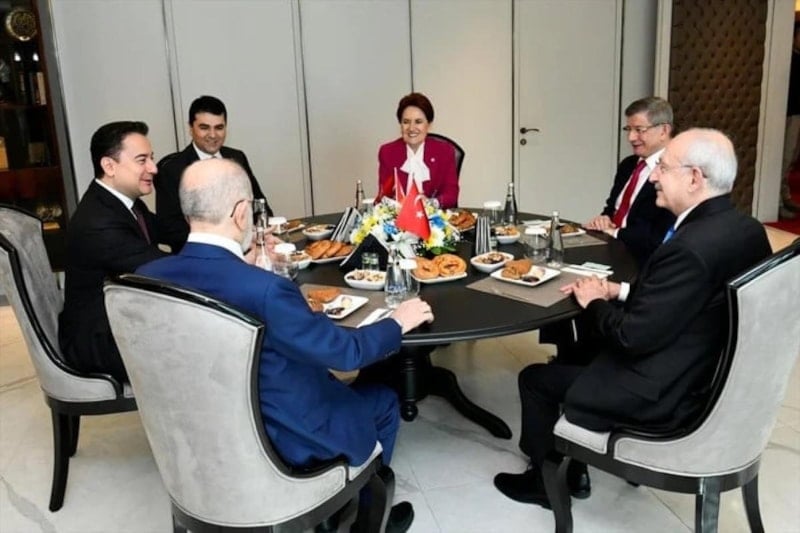 İyi Parti Genel Başkanı Meral Akşener'in ev sahipliğinde CHP Genel Başkanı Kemal Kılıçdaroğlu, DEVA Partisi Genel Başkanı Ali Babacan, Demokrat Parti Genel Başkanı Gültekin Uysal, Saadet Partisi Genel Başkanı Temel Karamollaoğlu ve Gelecek Partisi Genel Başkanı Ahmet Davutoğlu bir araya geldi.