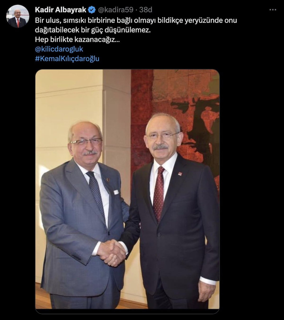 Bugüne kadar yaptığımız açıklamalarda Genel Başkanımız Sn. Kemal Kılıçdaroğlu'nun iradesi dışında hareket etmeyeceğimizi belirtmiştik. Aynı çizgideyiz. Temennimiz, Millet İttifakı'nın tüm paydaşlarıyla yoluna devam etmesidir.