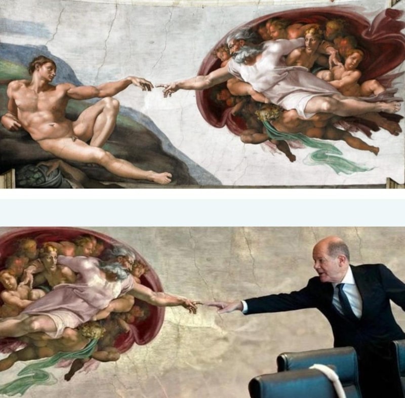 Kullanıcılar bu anı, özellikle Vatikan’daki Sistine Şapeli’nde yer alan Michelangelo’nun ünlü eseri "Adem’in Yaratılışı" tablosundan esinlenerek pek çok şekilde yorumladı.