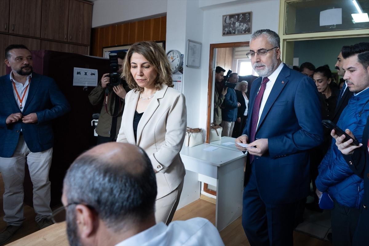 Eşi Semire Işıkhan ile 31 Mart Mahalli İdareler Genel Seçimlerinde oy kullanacağı İzciler Ortaokulu'na gelen Çalışma ve Sosyal Güvenlik Bakanı Vedat Işıkhan, vatandaşlar ve sandık görevlileriyle selamlaşan ve bir süre sohbet etti.