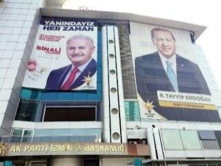 AK Parti İzmir İl Başkanlığı binası ve ilçe başkanlıkları olmak üzere kentteki 30 köprü, 60 megalight (büyük ebatlı aydıtlatmalı reklam panosu), 100 bilboard ve 70 otobüs durağına üzerinde Binali Yıldırım'ın fotoğrafının bulunduğu 'Yanındayız her zaman' ve 'İstanbul'un sana ihtiyacı var' yazılı pankartlar ve afişler asıldı.