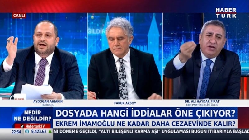 Canlı yayında Avukat Aydoğan Ahıakın ile CHP Meclis Üyesi Ali Haydar Fırat arasında tartışma çıktı. İkili arasında yaşanan "Rezilsin" tartışması stüdyoda tansiyonu yükseltti.