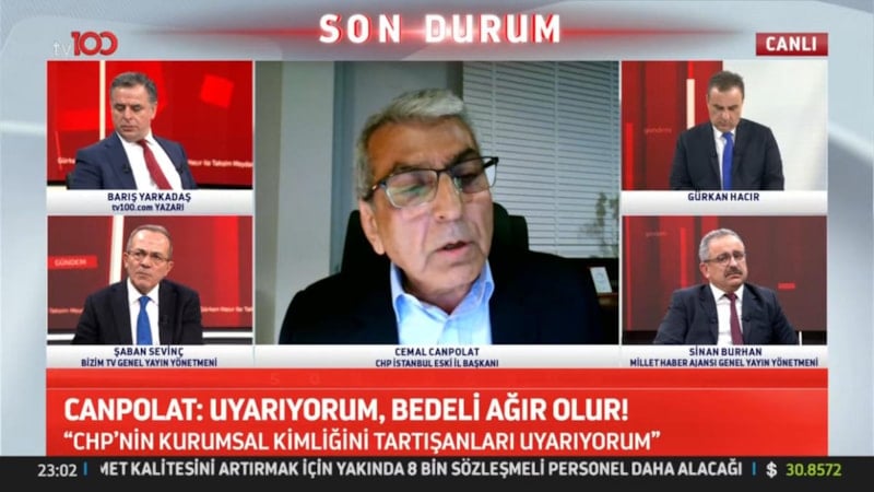CHP İstanbul eski İl Başkanı Cemal Canpolat ile gazeteci Şaban Sevinç arasında canlı yayında tansiyon yükseldi. Canpolat'ın "Sahibine karşı görevini yaptın" sözleri üzerine Sevinç, "Utanmaz herif, ahlaksız" diyerek tepki gösterdi.