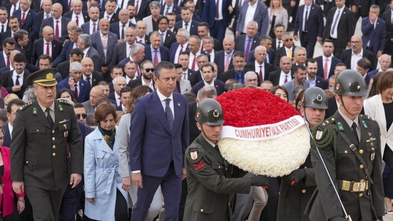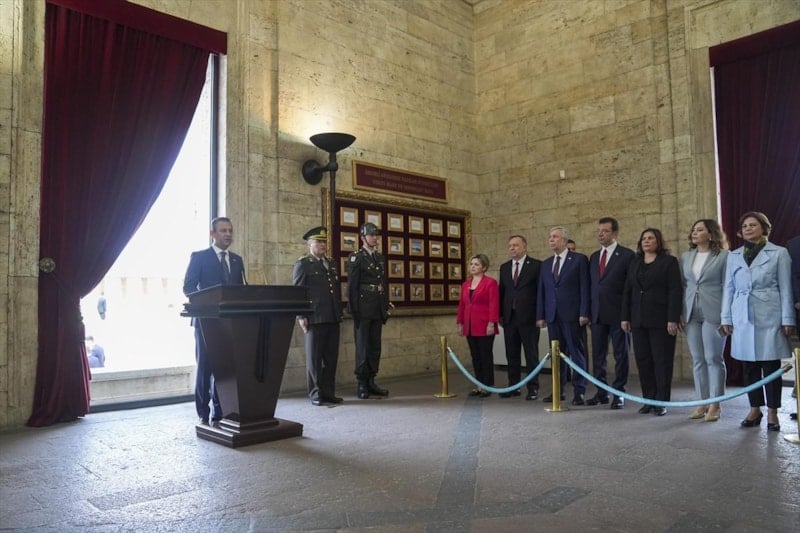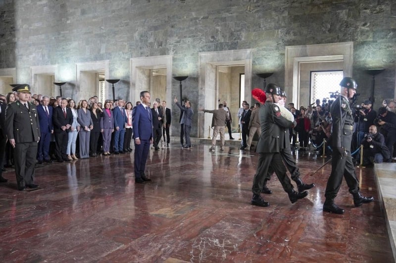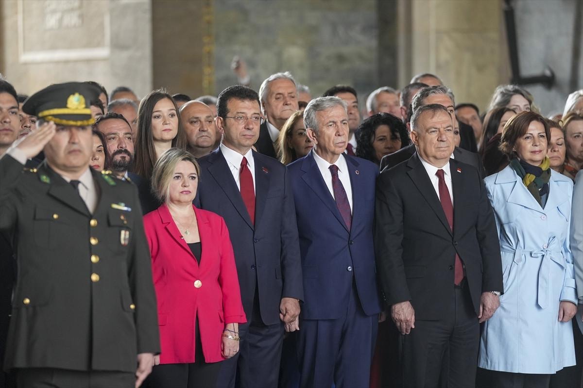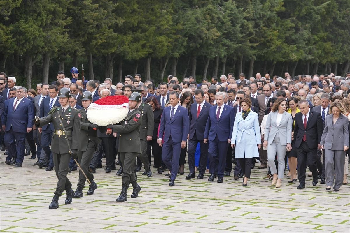 Özel'in mozoleye çelenk koymasının ardından saygı duruşunda bulunuldu.