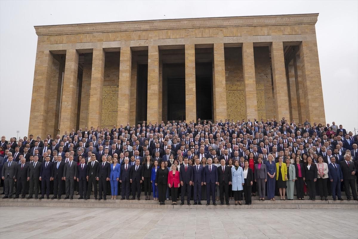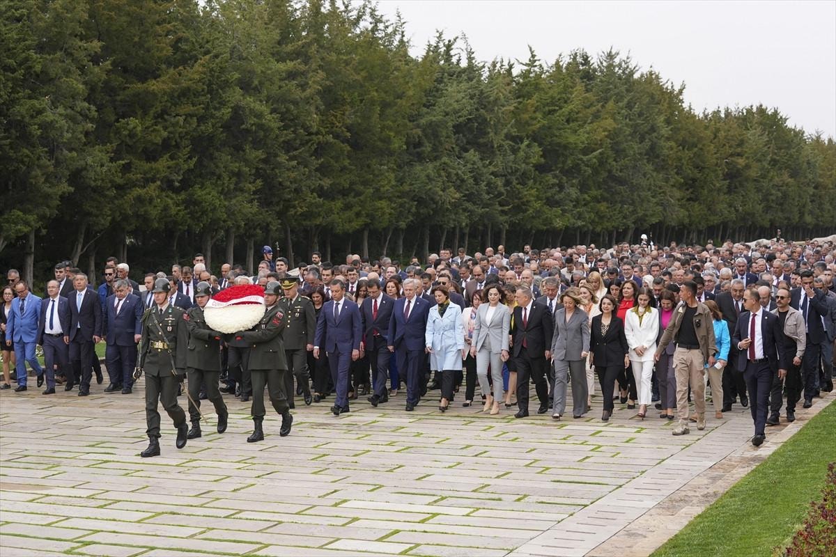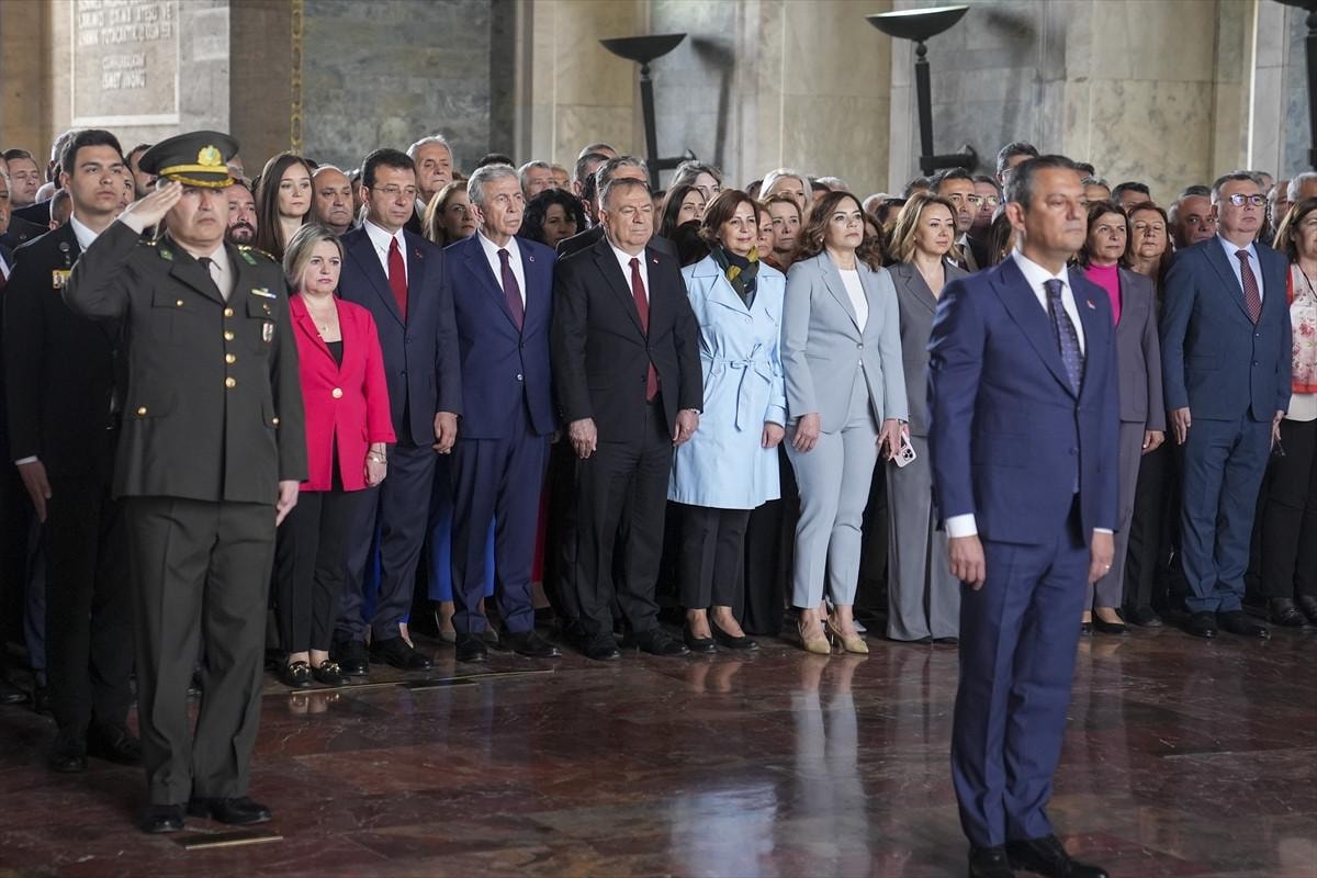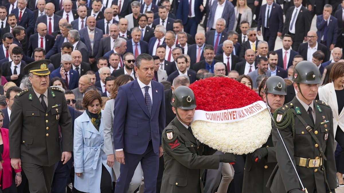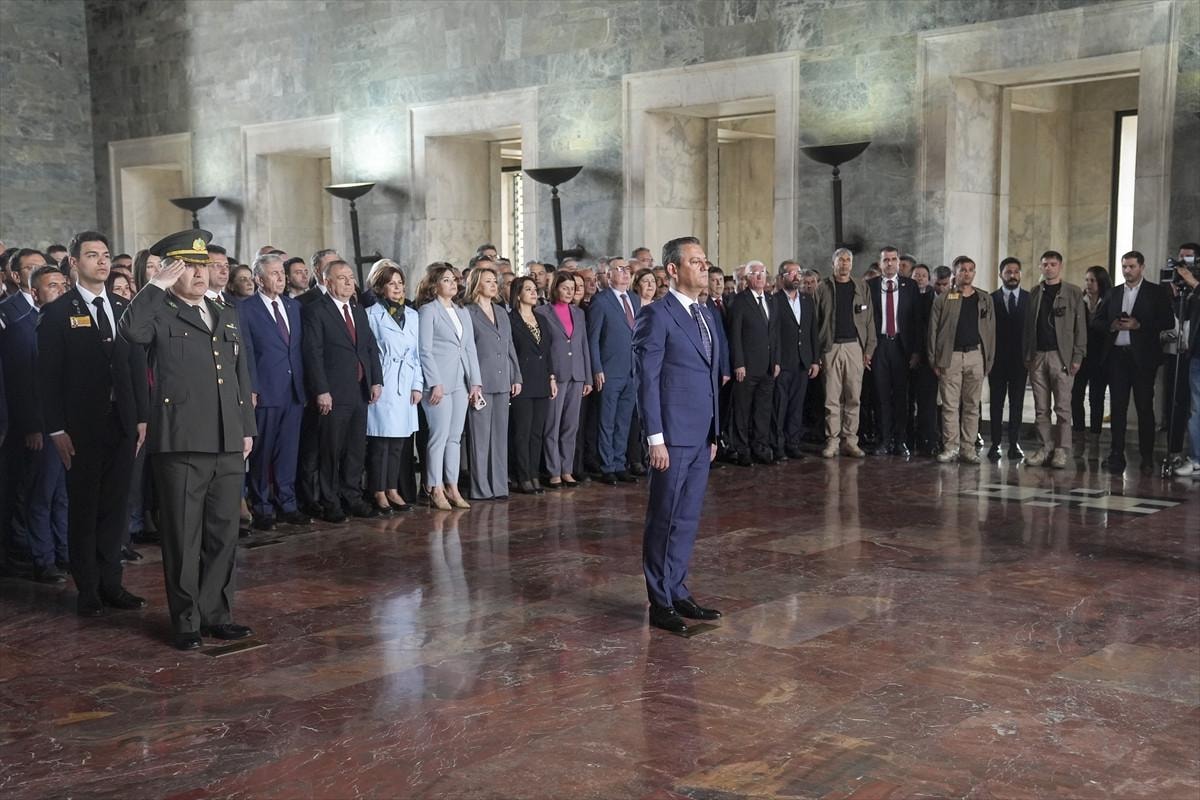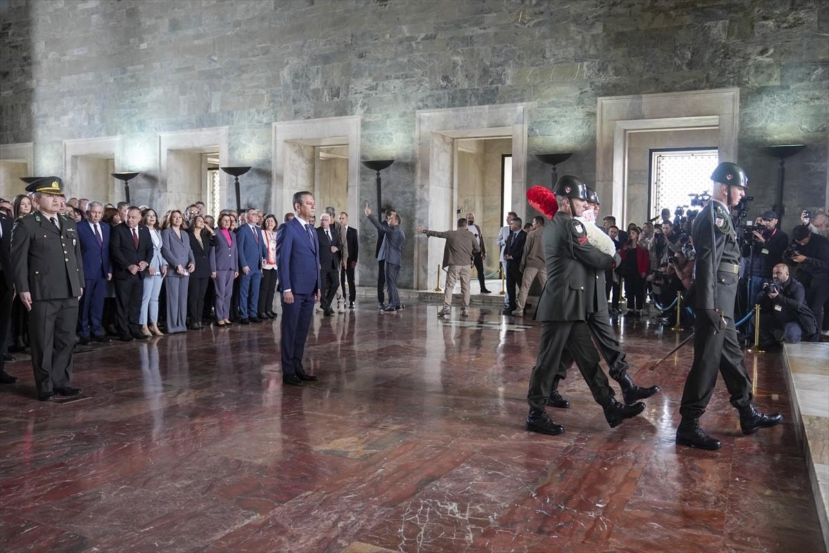 CHP Genel Başkanı Özgür Özel başkanlığındaki heyet, Aslanlı Yol'dan yürüyerek Atatürk'ün mozolesine geldi.