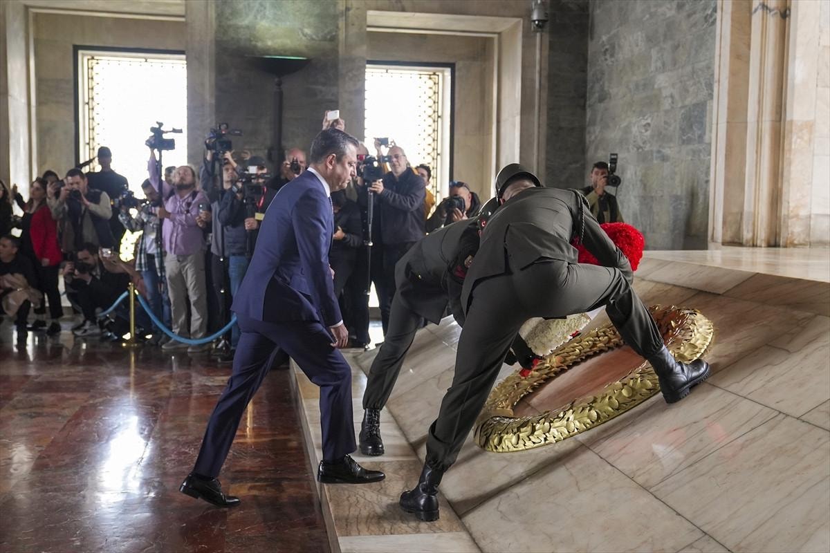 Özel, İnönü'nün mozolesine de çelenk bırakarak, saygı duruşunda bulundu.