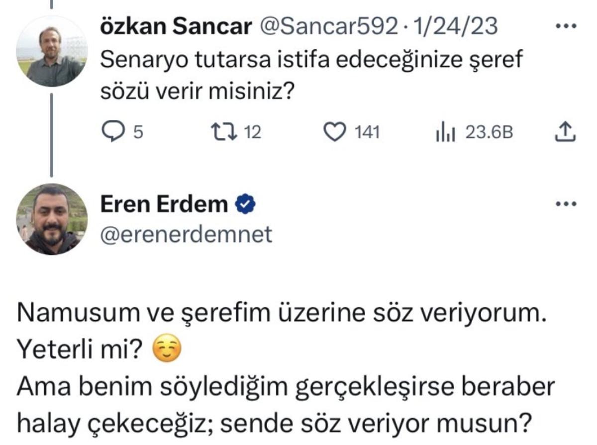 Erdem'in seçim kaybedilirse istifa edeceği üzerine şeref sözü verdiği paylaşım ise platformlarda dalga konusu oldu.