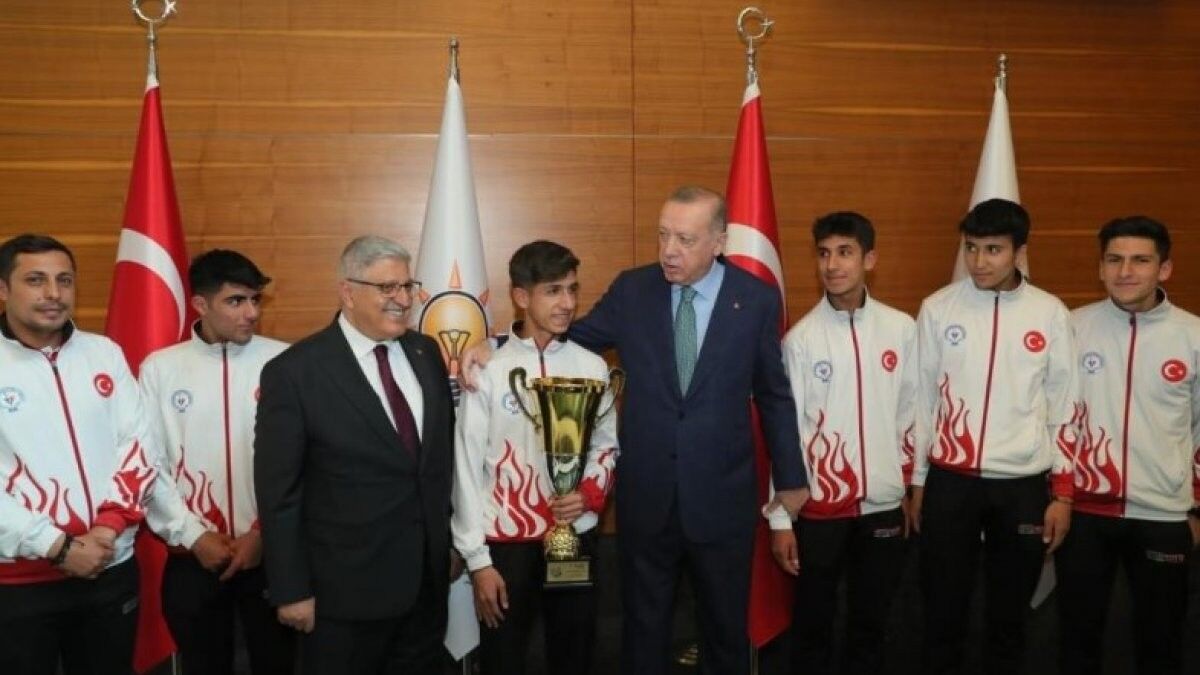 Cumhurbaşkanı Recep Tayyip Erdoğan, Dünya Kros Şampiyonası’na katılarak takım kategorisinde birinci olan Bitlis Özel Final Akademi Anadolu Lisesi öğrencileri ve ferdi sıralamada altın madalya kazanan Caner Can Tunçtan ile bir araya geldi.