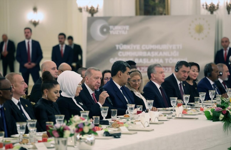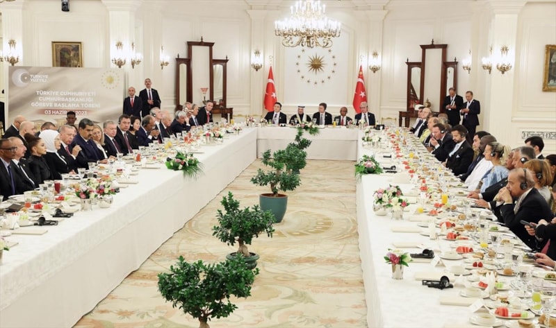 Cumhurbaşkanı seçilen Recep Tayyip Erdoğan, yeniden seçilmesi sonrası göreve başlama törenine katılan liderler onuruna Çankaya Köşkü'nde yemek verdi.