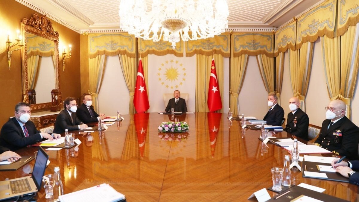 Toplantıya Dışişleri Bakanı Mevlüt Çavuşoğlu, Milli Savunma Bakanı Hulusi Akar, Cumhurbaşkanlığı İletişim Başkanı Fahrettin Altun ve Cumhurbaşkanlığı Sözcüsü İbrahim Kalın da katıldı.