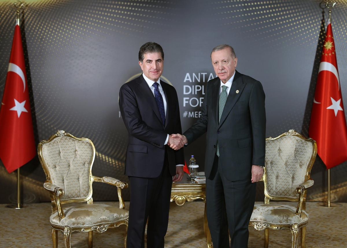 Cumhurbaşkanı Recep Tayyip Erdoğan, Antalya Diplomasi Forumu vesilesiyle Türkiye’de bulunan Irak Kürt Bölgesel Yönetimi (IKBY) Başkanı Neçirvan Barzani’yi kabul etti. Gerçekleşen görüşmede, Türkiye-Irak ilişkileri başta olmak üzere, IKBY ile iş birliği imkanları, bölgesel gelişmeler ve küresel meseleler kapsamlı şekilde ele alındı.