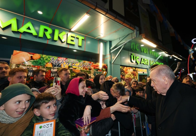 Rize-Artvin Havalimanı’na iniş yapan Erdoğan, buradan helikopterle baba ocağı Güneysu ilçesine geçti. İlçe merkezinde toplanan hemşerileri Cumhurbaşkanı Erdoğan’ı büyük bir coşkuyla karşıladı.