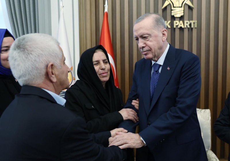 Cumhurbaşkanı ve AK Parti Genel Başkanı Recep Tayyip Erdoğan, Hakkari'nin Yüksekova ilçesine bağlı İkiyaka köyünde, 36 yıl önce PKK'lı teröristlerce katledilen Aykut ve Boz ailelerinin yakınlarıyla, AK Parti Genel Merkezi'nde bir araya geldi.