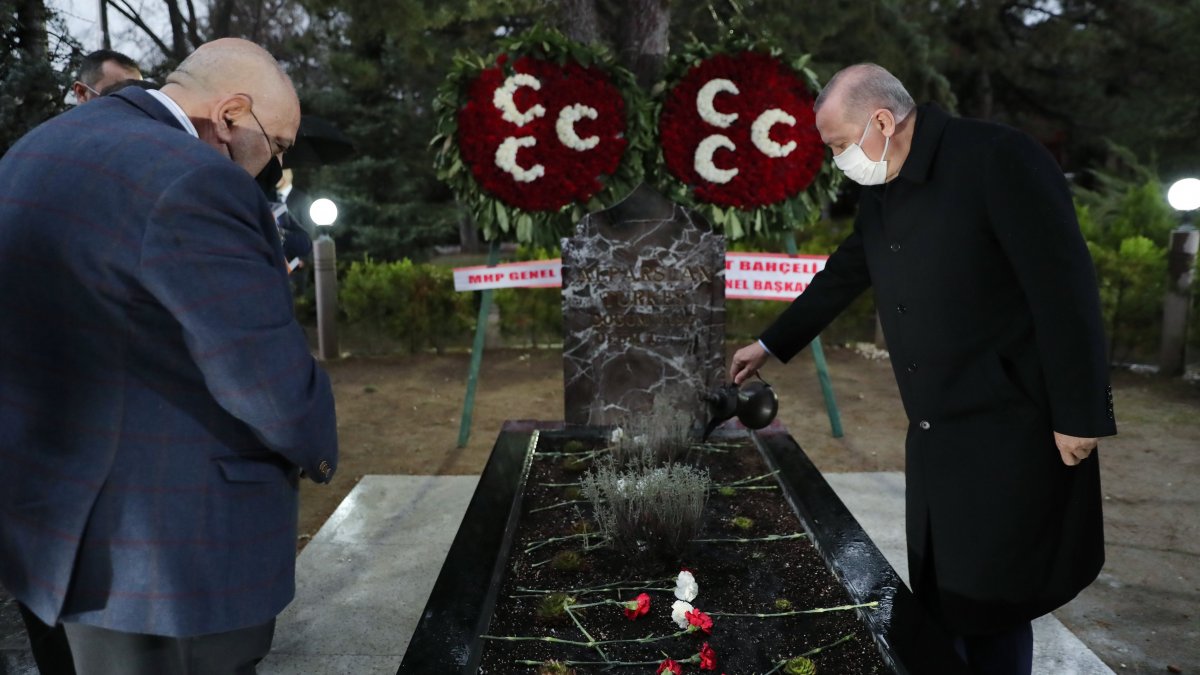 Cumhurbaşkanı Recep Tayyip Erdoğan, Cumhurbaşkanlığı Külliyesi'ndeki Değerlendirme Toplantısı'nın ardından Beştepe'de bulunan Türkeş'in mezarına gitti.