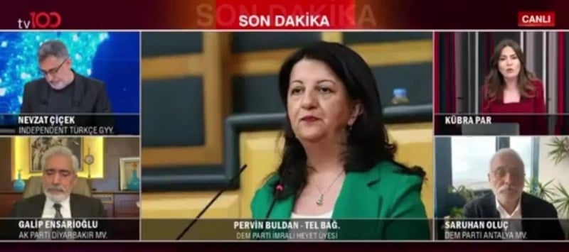 tv100'e açıklamalarda bulunan DEM Parti Eş Genel Başkanı Tuncer Bakırhan, ülke olarak tarihi bir eşikte olduklarını belirtirken, Pervin Buldan da terör örgütünün kısa sürece fesih açıklamasını yapacağını belirtti.