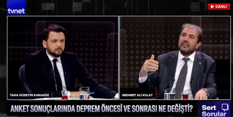 Seçmen Sayın Cumhurbaşkanı'na daha çok güveniyor. Oran yüzde 70'e 30 çıktı. Bu araştırma deprem bölgesinde değil ama Türkiye genelinde depreme yönelik yapılan bir araştırmadır. Araştırmayı sokaktaki insana 5 bin 750 kişiye yaptık ve illere göre dağıttık.