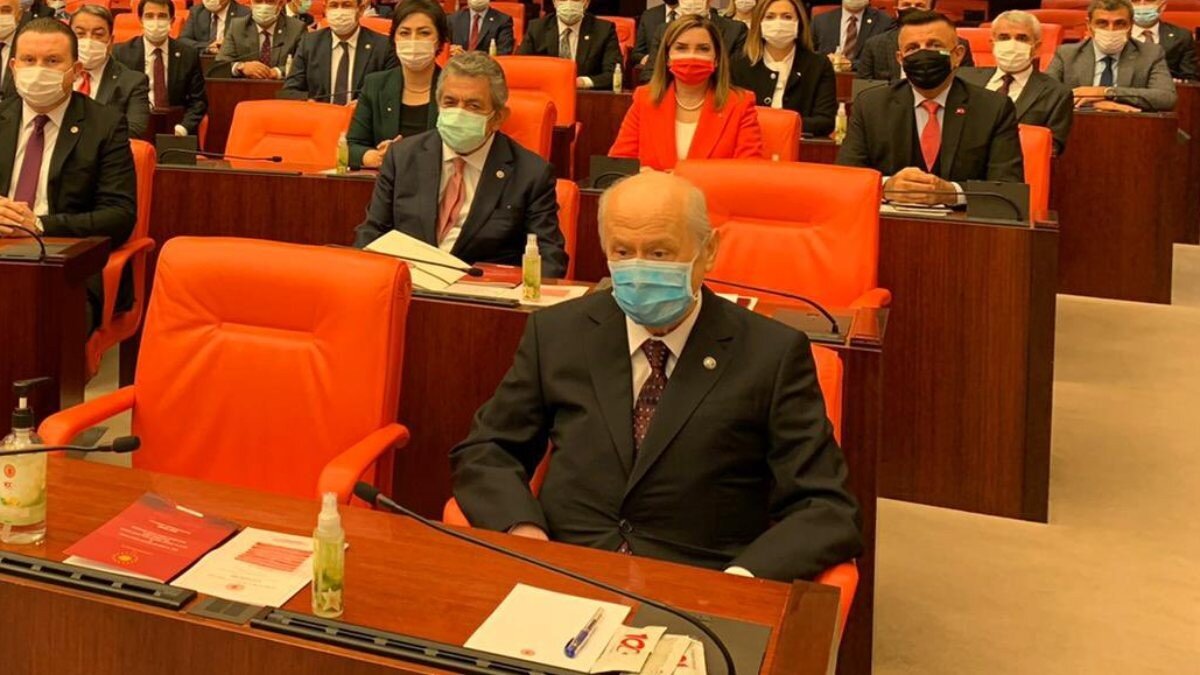 MHP sıralarında milletvekillerinin koronavirüs önlemlerine dikkat ettiği görülürken, Bahçeli'nin yanına ve arkasına kimsenin oturmaması da dikkat çekti.