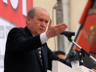 Başbakan Recep Tayyip Erdoğan'ın Mısır'daki olayların ardından rabia işareti yapmaya başladığını ifade eden Bahçeli, "İş öyle bir hal aldı ki şimdi yapamıyor. Bu işaretten halk çoluğuyla çocuğuyla devleti soyan 4 bakanı anlamaya başladı" diye konuştu.