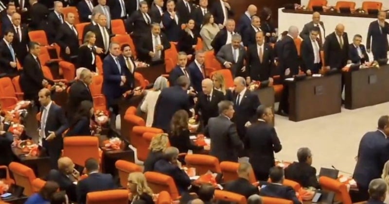 Bahçeli'nin burada DEM Parti Eş Genel Başkanı Tuncer Bakırhan, DEM Parti Grup Başkanvekili Sezai Temelli, DEM Parti Van Milletvekili Pervin Buldan ve DEM Parti Ağrı Milletvekili Sırrı Sakık'ın da aralarında bulunduğu isimlerle tokalaşma anları kameralara yansıdı.