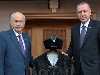 Görüşmenin sonunda Bahçeli tarafından Cumhurbaşkanı Recep Tayyip Erdoğan'a, 'Hakan kaftanı' takdim edildi.
