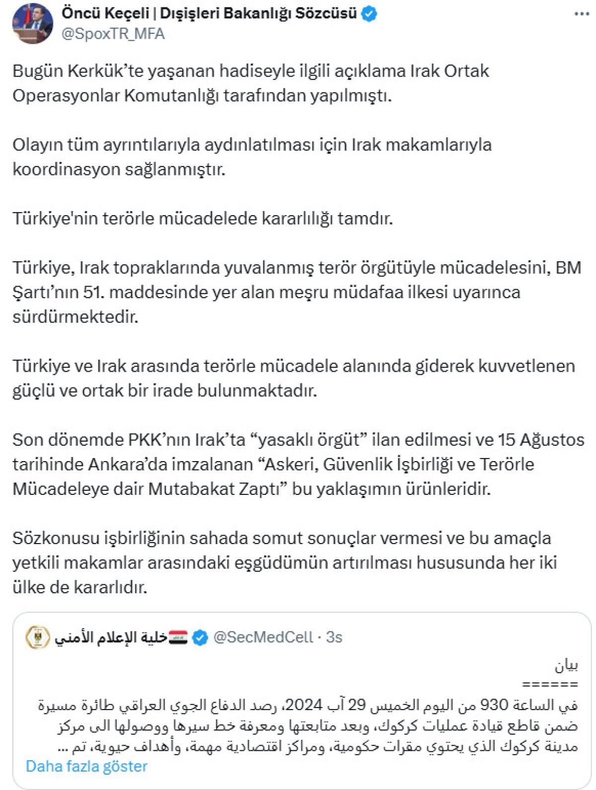 Dışişleri Bakanlığı Sözcüsü Öncü Keçeli, konuyla ilgili sosyal medya hesabından yaptığı açıklamada, şu ifadeleri kullandı: