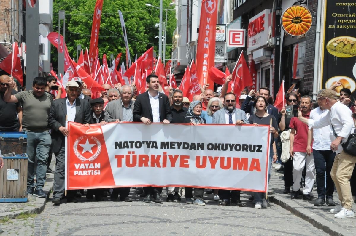 Partinin “Dedeağaç’ta NATO Tatbikatı, Türkiye Uyuma” sloganıyla düzenlediği eylem, kent merkezindeki Eski Cami önünden başlayan yürüyüşle start aldı. Saraçlar Caddesi’nin trafiğe kapalı bölümüne kadar devam eden kalabalığa, Vatan Partisi Genel Başkanı Doğu Perinçek seslendi.