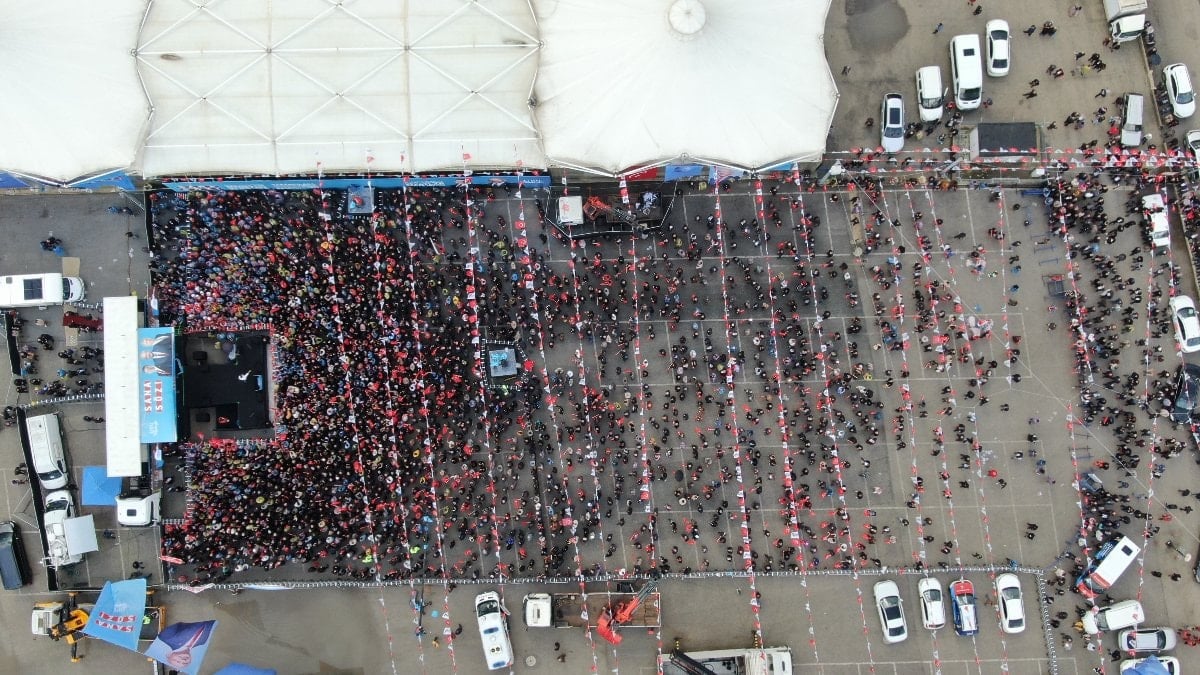 İmamoğlu'nun konuştuğu meydanın yarısının ise boş kalması dikkat çekti.